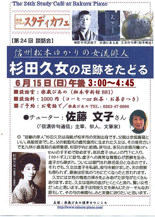 (2014) ■楽蔵ぴあの「スタディカフェ」第24回 信州松本ゆかりの女流俳人 杉田久女の足跡をたどる