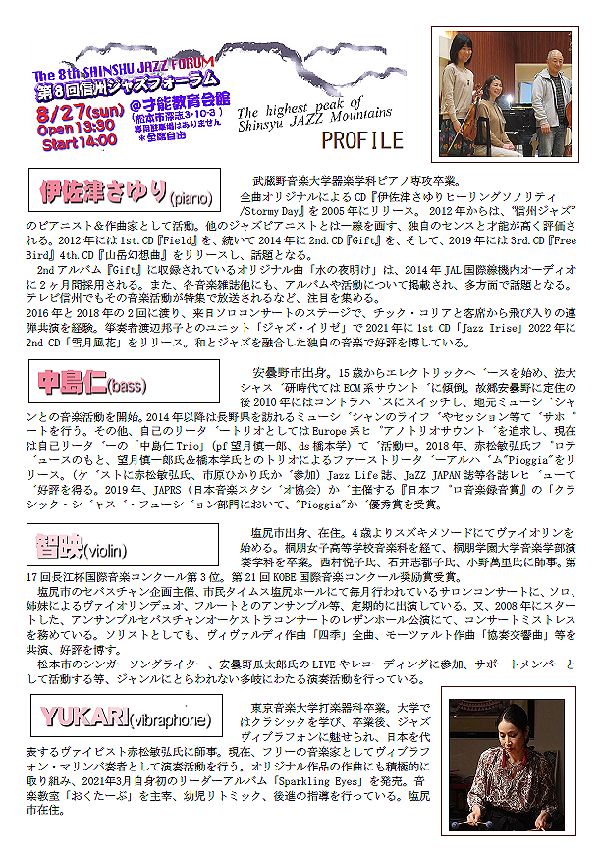 ¡‘æ‚W‰ñMBƒWƒƒƒYƒtƒH[ƒ‰ƒ€@ Anywhere Door and YUKARI Session ˆÉ²’³‚ä‚è(Pf),’q‰f(Vio),’†“‡ m(Bass)•YUKARI(vi‚‚)